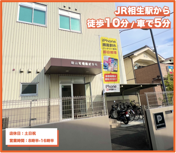 iPhone即日修理屋さん相生店は、スマートフォンの修理業を通じて、物を大切にご利用いただくお手伝いをさせていただければと考えております。
