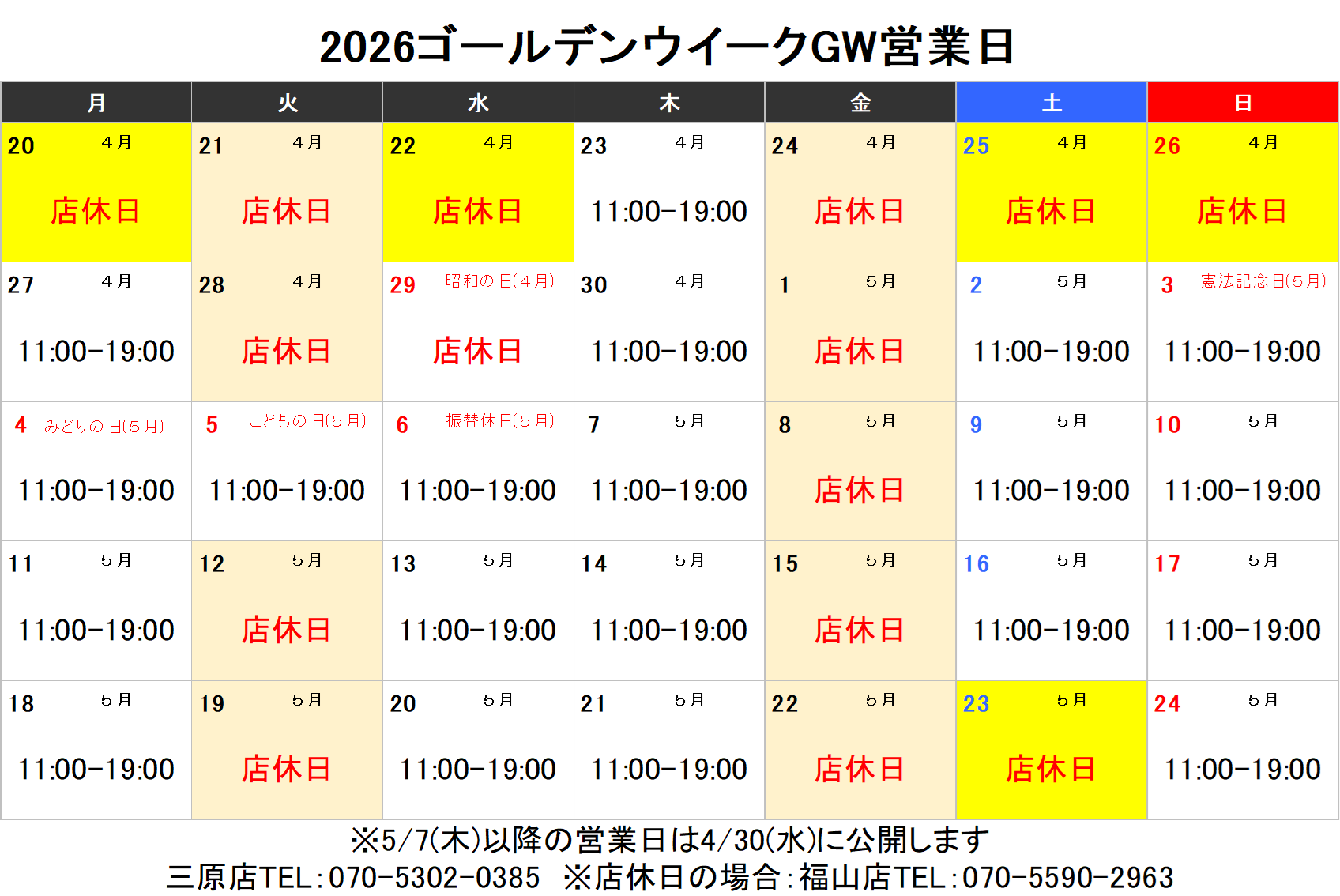 店休日
