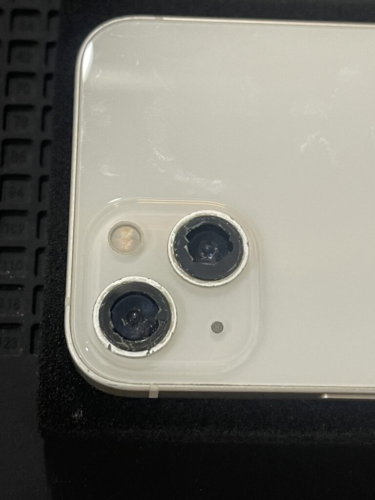 iPhone 13のアウトカメラレンズ交換修理 西武秩父駅よりご来店いただきました!背面に強い衝撃が加わってしまった事によりアウトカメラのレンズが割れてしまいました。交換後はカメラも綺麗に映るようになりました!