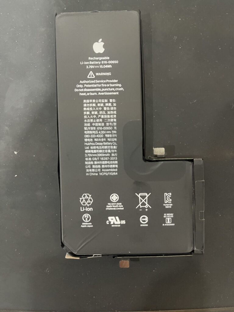 iPhone 11ProMaxのバッテリー交換、延岡駅よりご来店いただきました! 充電が半日持たない状態でしたが、バッテリーの交換で今後も長くご利用いただけるかと思います。