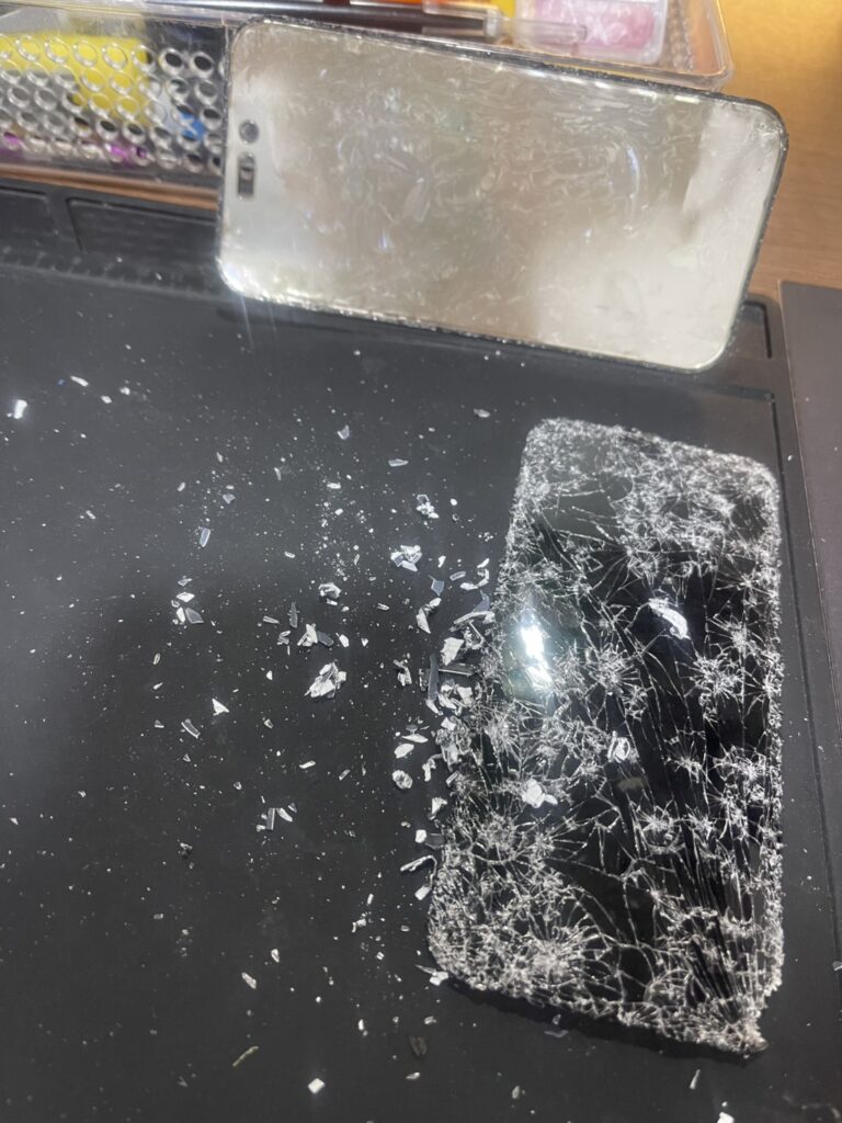 iPhoneを車に踏まれた事によりパネルがバキバキに破損してしまった事によりご来店頂きました。