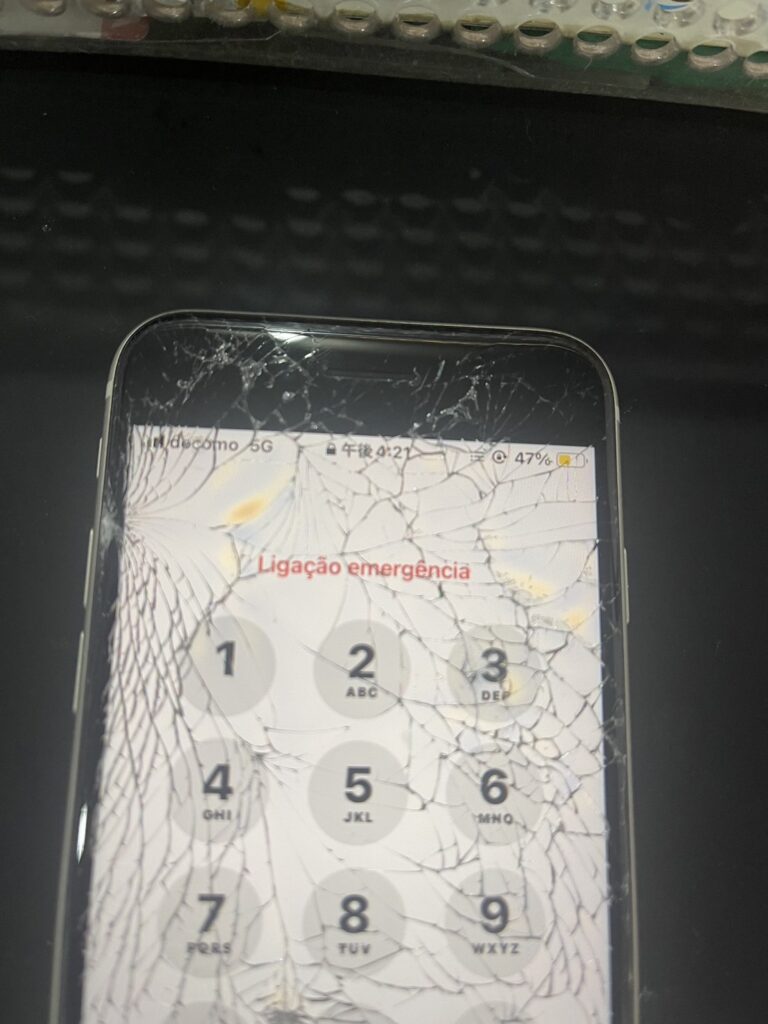 iPhoneSE3画面交換修理、テラスウォーク一宮よりご来店いただきました! 落として画面が割れてしまった状態でしたが、パネルの交換で改善されました。